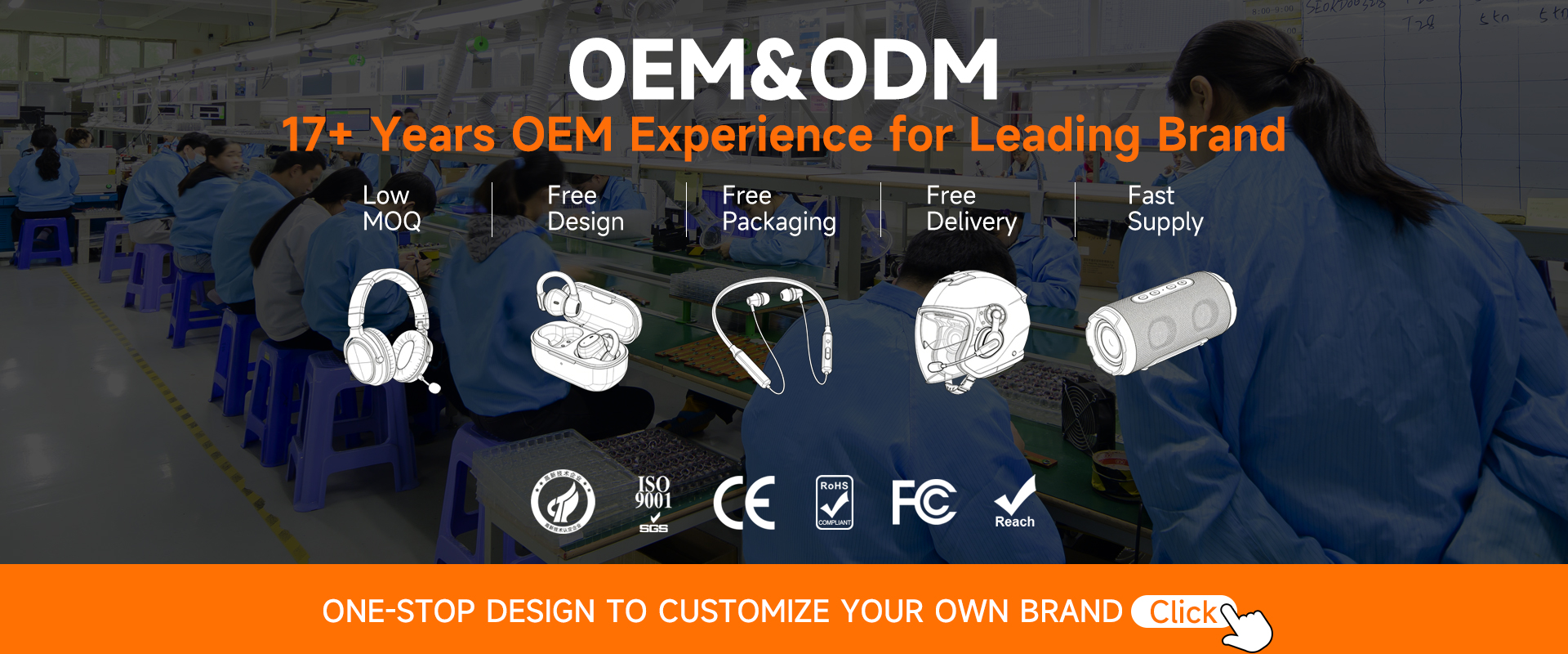 We are a product oriented team that think up, design and manufacture products in audio produtcts, such as wireless earphones, bluetooth AI speakers... We integrate the latest technology, usability and sense of art into product design to create the unique products. We offer Original Equipment